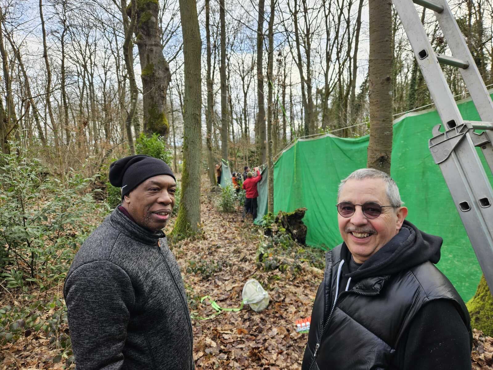 Nos bénévoles ont répondu à l'appel pour remonter les protections du pas de tir à 60m.