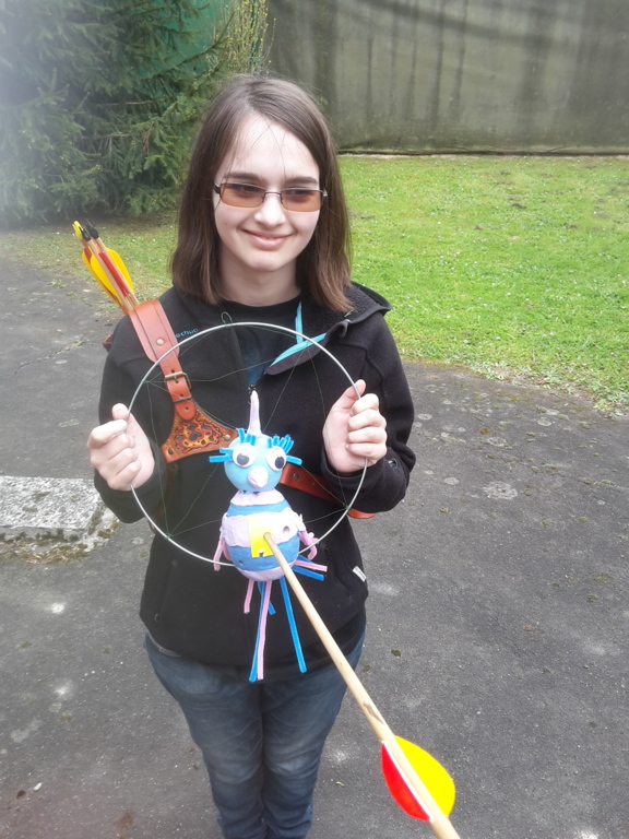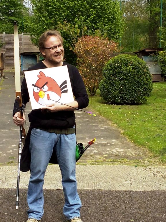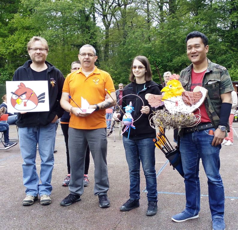 Cette année, le premier à tomber fût celui des pious-pious remporté par Laurent, très rapidement Claire D l'imita sur celui des sans viseurs, après un petit suspense Patrice emporta celui des doubles compagnies. L'oiseau des viseurs nécessita plus de temps et l'aide de tous les archers présents pour au final tomber sous la flèche de Ratana.
